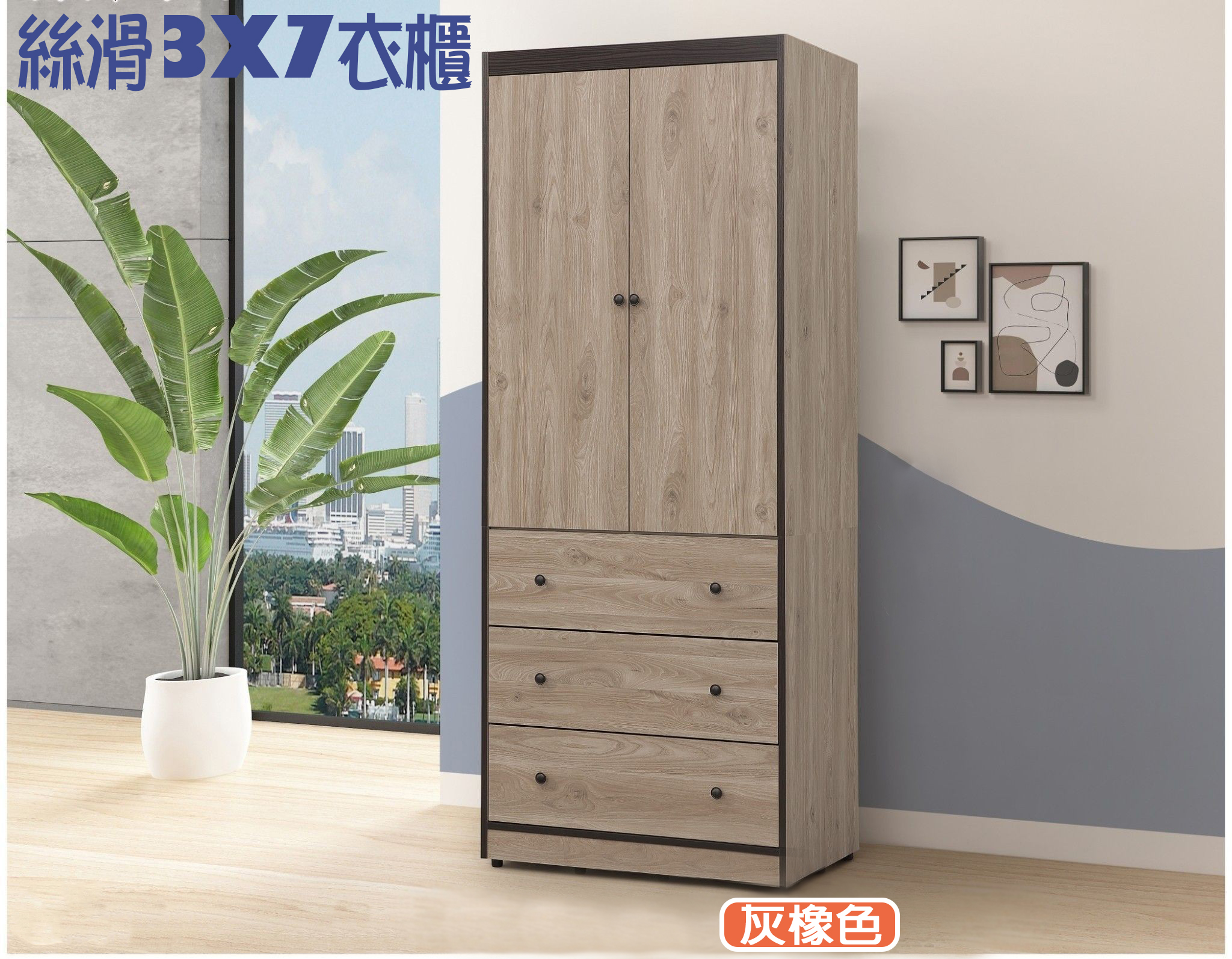 絲滑 3X7尺衣櫃 (白梧桐/灰橡)